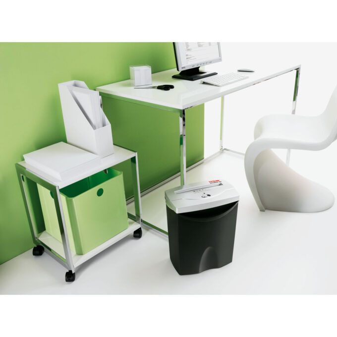 Ta niszczarka dokumentów tnąca na ścinki, z oddzielnym mechanizmem tnącym płyty CD, przeznaczona jest do ochrony danych małym biurze.Zapewni dużą ochronę danych firmowych (poufne dane także osobowe, które podlegają większej ochronie, np. akta osobowe, umowy, dokumentacje medyczne).